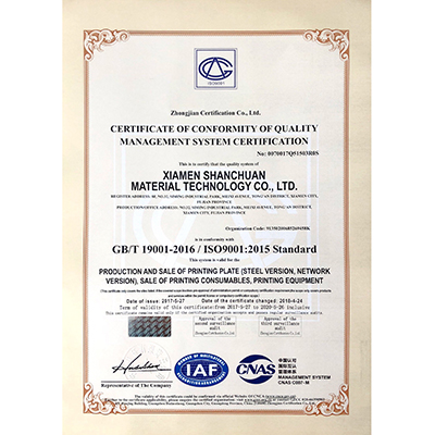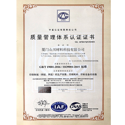 質(zhì)量管理體系認(rèn)證證書